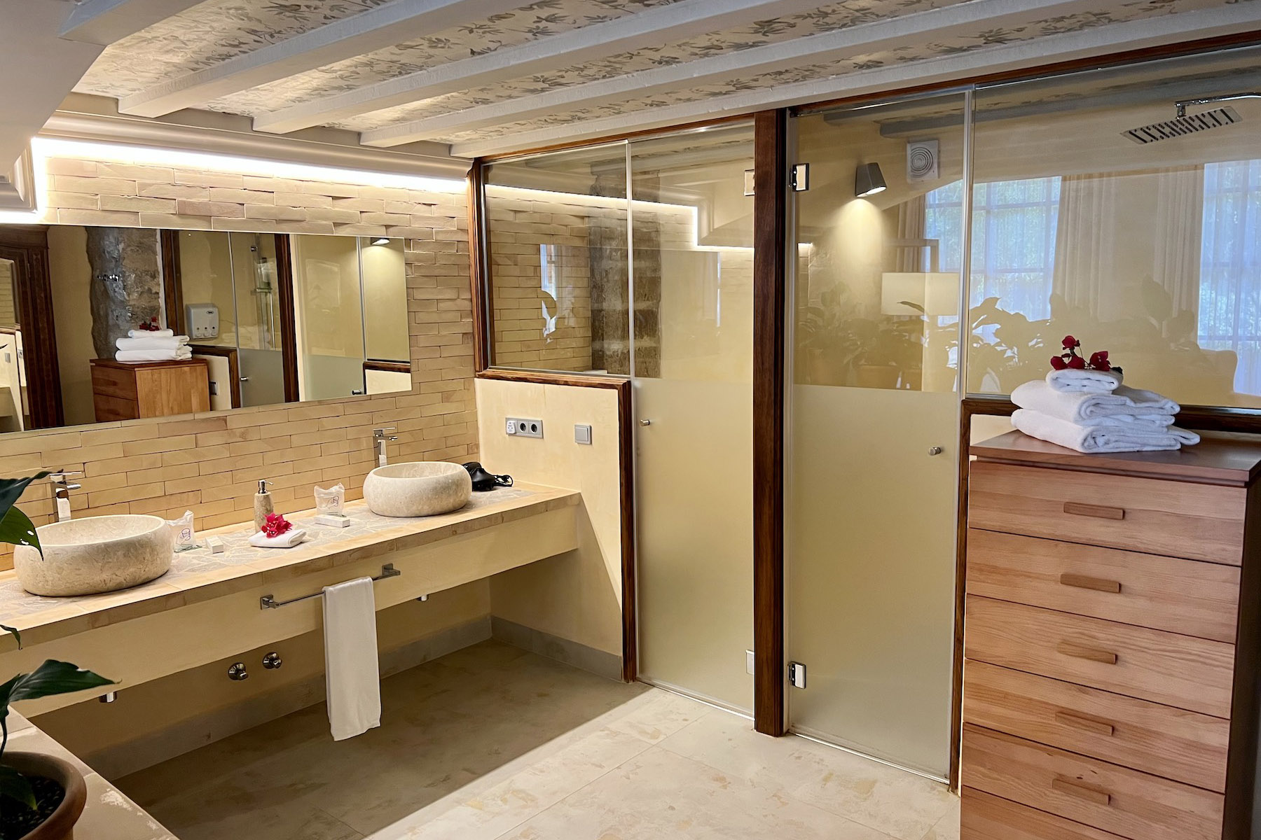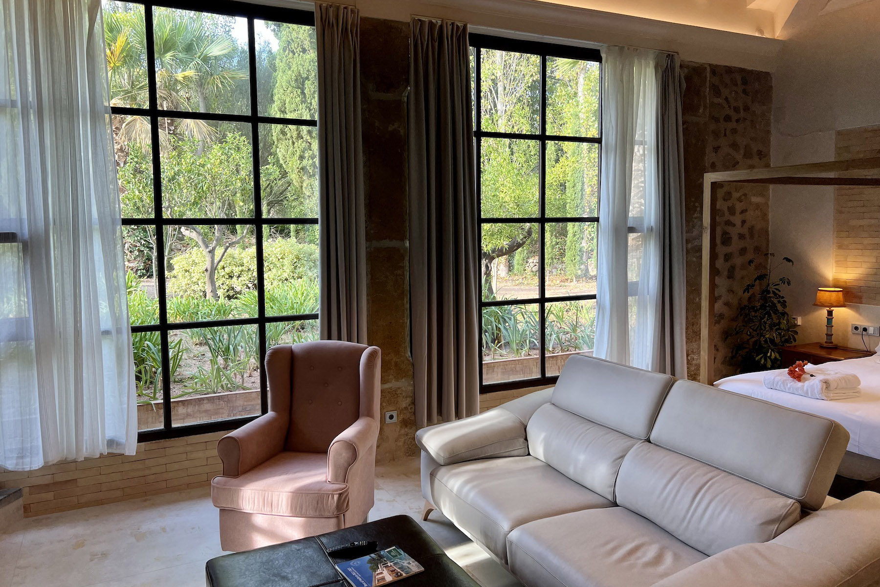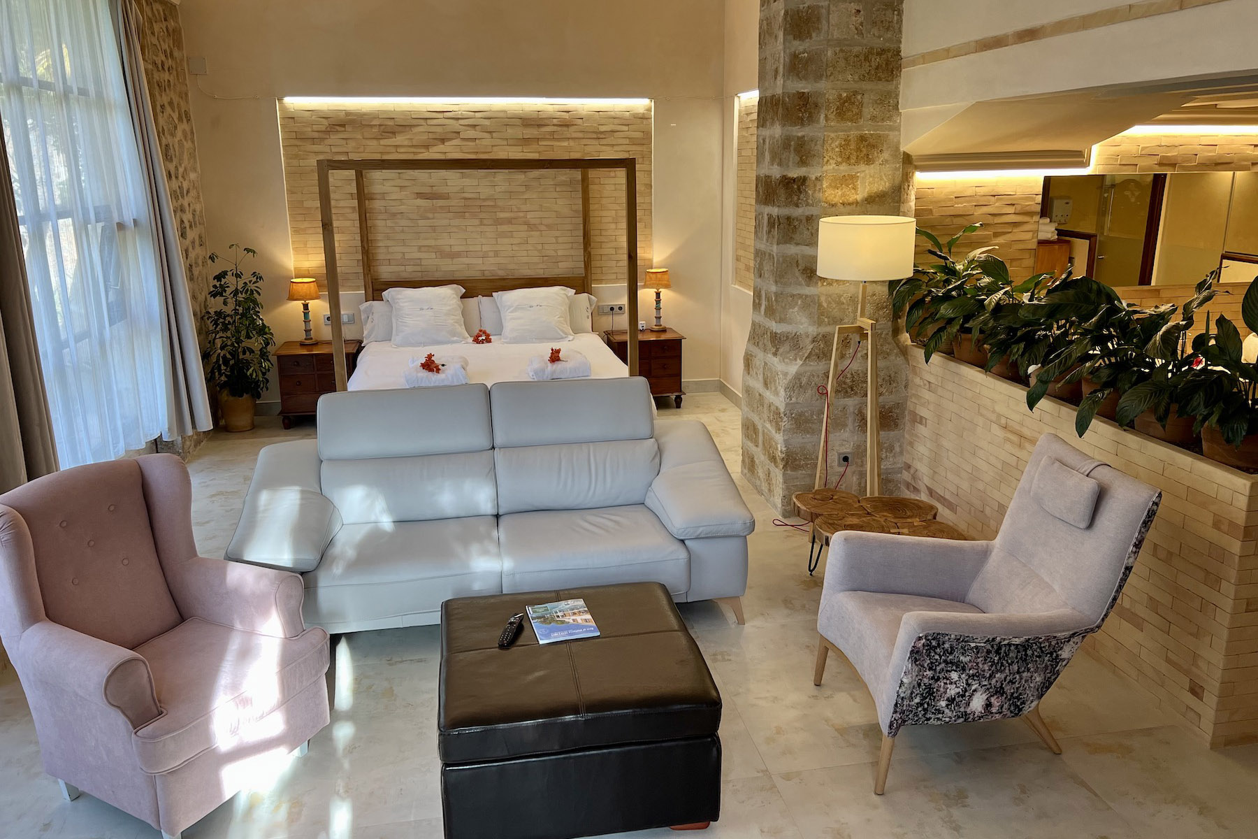 All our Junior Suite Deluxe rooms are bright and have a surface area of between 58 and 69 m2. They are located in the main building and in Can Nusa, all of them have a large terrace and/or a very quiet courtyard.